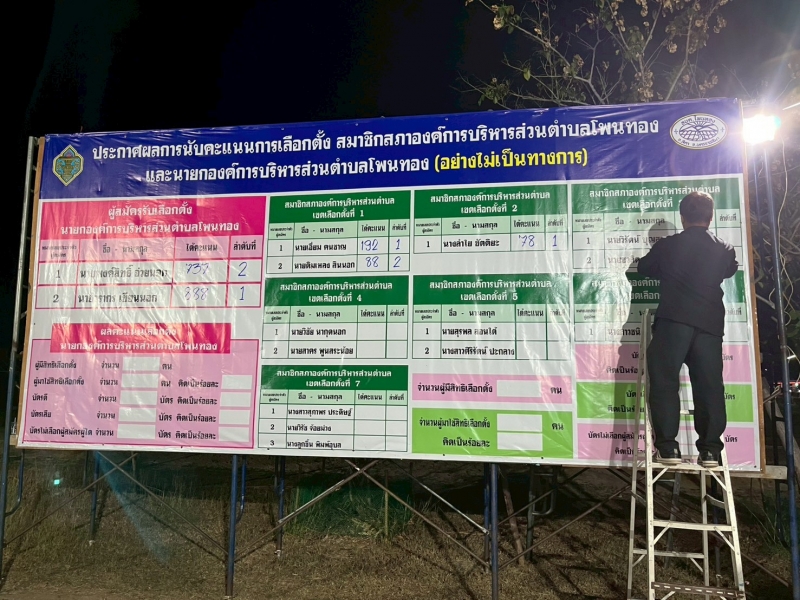 วันส่งหีบบัตรเลือกตั้งและรวมคะแนนเลือกตั้ง ณ หอประชุมองค์การบริหารส่วนตำบลโพนทอง