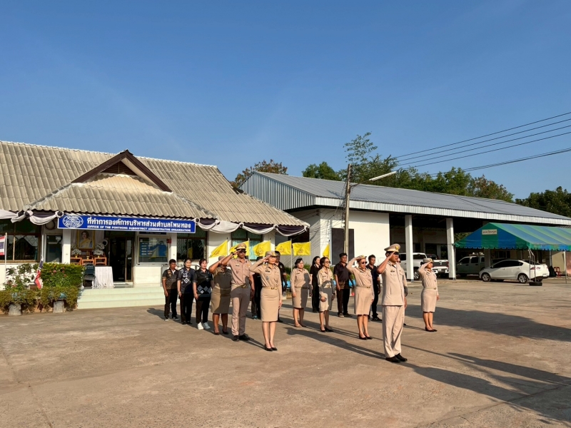 ในวันจันทร์ที่ 9 กุมภาพันธ์ 2569 เวลา 08.00 น. องค์การบริหารส่วนตำบลโพนทอง อำเภอสีดา จังหวัดนครราชสีมา นำโดย นายลิขิต ประยูรสิงห์ ผู้อำนวยการกองช่าง รักษาราชการแทน ปลัดองค์การบริหารส่วนตำบลโพนทอง ปฏิบัติหน้าที่นายกองค์การบริหารส่วนตำบลโพนทอง พร้อมด้วยพนักงานส่วนตำบล และพนักงานจ้าง องค์การบริหารส่วนตำบลโพนทอง ร่วมกิจกรรมเคารพธงชาติ ประจำปี 2569 ณ บริเวณลานหน้าเสาธง ที่ทำการองค์การบริหารส่วนตำบลโพนทอง เพื่อเป็นการปกป้องเชิดชูสถาบันชาติ ศาสนา และพระมหากษัตริย์